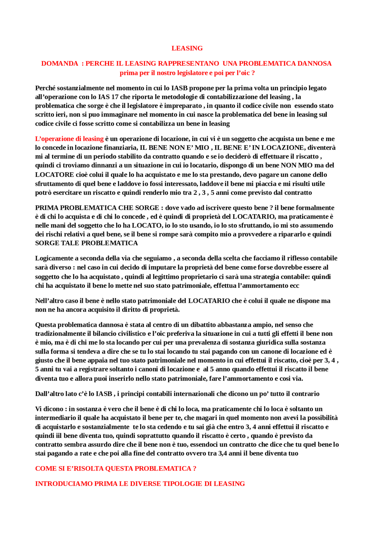 Contratto di leasing, ecco il fac simile - prontoprofessionista.it Il contratto di leasing è una scrittura privata attraverso la quale un soggetto che necessita dell'utilizzo di un bene (detto utilizzatore) si rivolge a una società che fornisce tale bene (ovvero la società di leasing) che a sua volta lo ha precedentemente acquistato dal fornitore (colui che ha prodotto il bene).