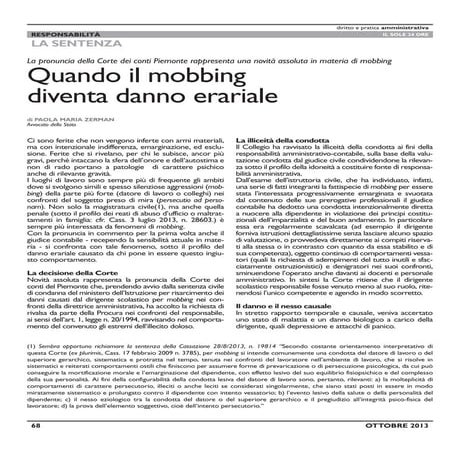 Avv. Paolo Nesta modulistica e formulario Applicando questi principi di carattere generale al caso concreto risulta che: a) nel mobbing discendente il lavoratore dovrà provare la violazione da parte del datore di lavoro o dei suoi collaborati del divieto posto a tutela del lavoratore e quindi della condotta persecutoria come avviene per esempio per gli atti discriminatori che al ...